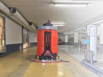 Idealerweise ist die Bodenreinigungsmaschine, auch Scheuersaugmaschine, auf den zu reinigenden Boden bzw. die zu reinigende Fläche abgestimmt.