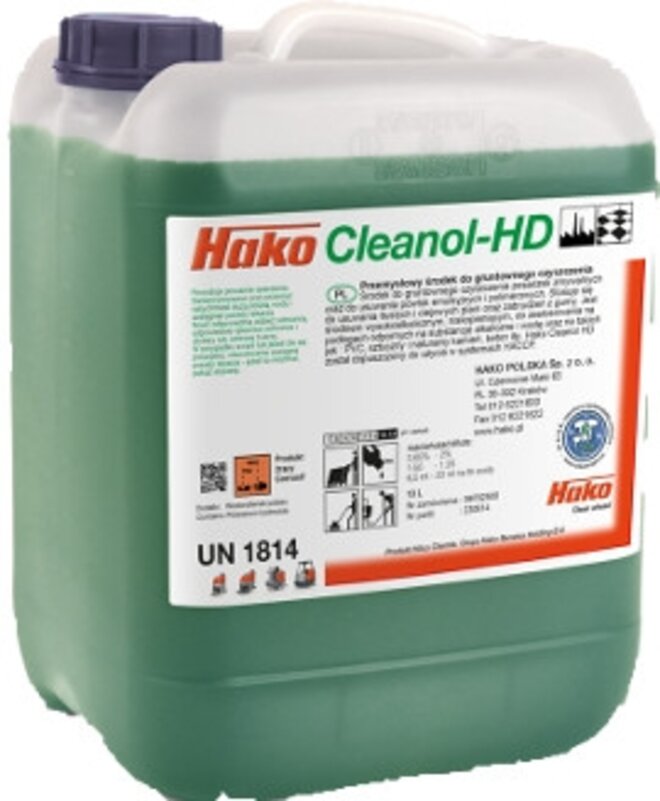 Hako Cleanol HD ist ein starker, hochalkalischer Industriereiniger für die Anwendung in Scheuersaugautomaten. Das Produkt ist auch für die Entfernung alter Acrylpolymer Beschichtungen geeignet. Cleanol HD überzeugt durch seinen geringen und sparsamen Produktverbrauch. Bringen Sie Cleanol HD auf wasser- und alkalibeständigen Böden zum Einsatz.