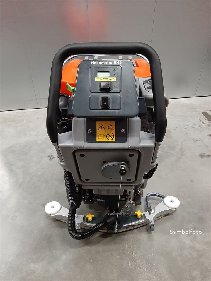 Die kompakt gebaute Hako Schrubmaster B45 PA ist mit einer Flächenleistung von 2.000 m²/h ideal zur gründlichen Unterhaltsreinigung von kleinen und mittleren Flächen geeignet.