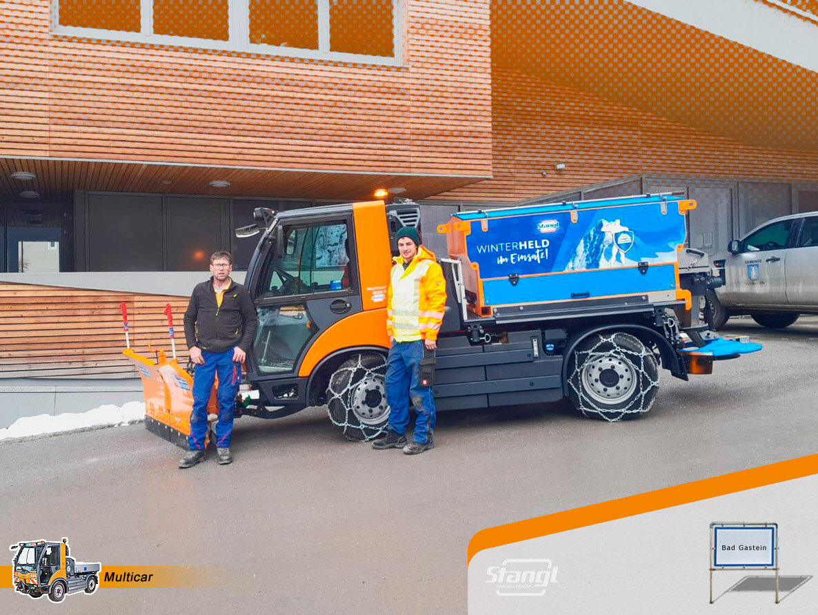 Die Mitarbeiter vom Wirtschaftshof der Stadtgemeinde Kufstein, haben heuer zwei neue Kommunalmaschinen von Stangl erhalten und somit bereits fünf Citymaster- und Multicar-Fahrzeug von Stangl im Einsatz. Eingesetzt werden diese in Kufstein für den Winterdienst, zum Kehren, zum Bewässern, zum Strassenwaschen und zur umweltschonenden Unkrautbekämpfung, mit Heisswasser bzw. Dampf. (2022)