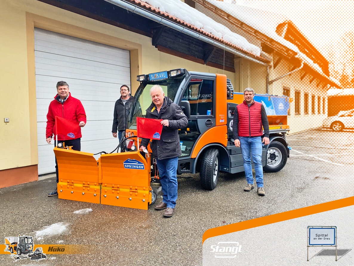 BÜRGERMEISTER GERHARD PIRIH, VIZE-BGM. PETER NEUWIRTH UND BAUHOFLEITER HELMUT SCHUSTERITSCH VON DER STADTGEMEINDE SPITTAL Bürgermeister Gerhard Pirih, Vize-Bgm. Peter Neuwirth und Bauhofleiter Helmut Schusteritsch von der Stadtgemeinde Spittal an der Drau, übernehmen die neue Kommunalmaschine Multicar M29 von Thomas Santeler, Team Stangl-kommunal. Der neue Geräteträger wird in Spittal für den Winterdienst, -für Transporte und zum Mähen eingesetzt: (2021)
