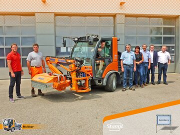 Die Bauhofmannschaft der Marktgemeinde Thalgau übernimmt den neuen Multicar Geräteträger vom Team Stangl Kommunal, zum Kehren, Mähen und für den Winterdienst in der Gemeinde. [Okt 2023]