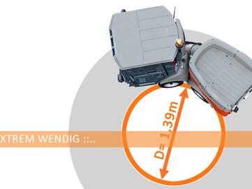 Multifunktionale Außenreinigungsmaschine in der 2-Tonnen-Klasse.
