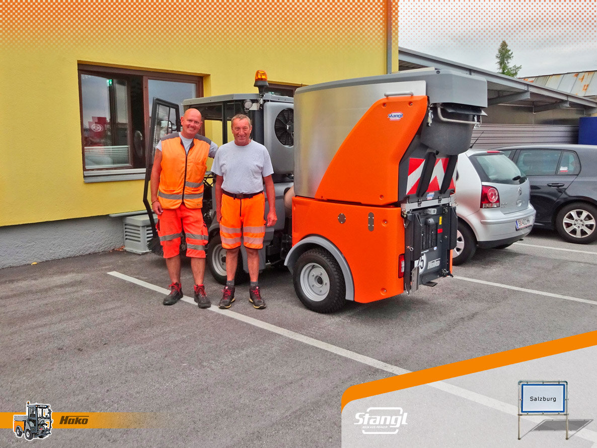 Mit einer Breite von nur 1,09 Meter, ist sie die kleinste Hako Kommunalmaschine bei Stangl. Unschlagbar ist das Schnell-Umrüstsystem, mit welchem sich die Maschine in nur rund 10 Minuten umrüsten lässt.