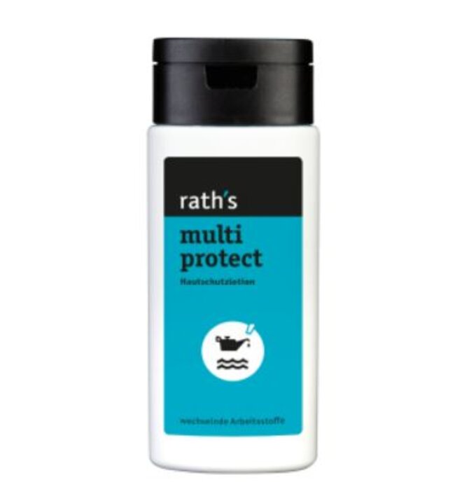 Schützt die Haut bei Arbeiten mit Öl, Fett, Ruß, Staub, Teer, Silikon, sowe feuchtem Schmutz und bei Kontakt mit Wasser. rath's multi protect kann beim Tragen von beschichteten Textil- und Lederhandschuhen angewendet werden.
