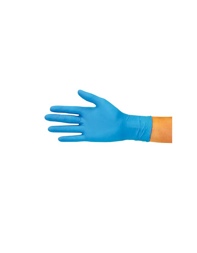 Nitril Untersuchungs- und Schutzhandschuh aus synthetischem Kautschuk, puderfrei und frei von Latex.