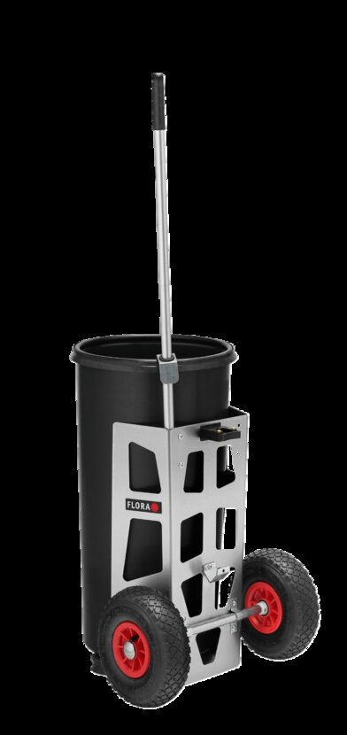 Kompakter, leichter Handwagen für den regelmäßigen Einsatz. Wagen aus Aluminium. Profilrahmen aus pulverbeschichteten, verzinktem Stahl. Inklusive Halterung für Müllgreifzange und eine Kunststofftonne 60 Liter. Auch mit pannensicheren Reifen erhältlich.