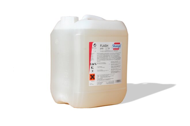 Stangl Flash plus ist ein alkalisch eingestellter, schnell wirkender Fettlöser zur Entfernung von fettigen, öligen und eiweißhaltigen Verunreinigung. Dabei spielt es keine Rolle, ob diese aus pflanzlicher oder tierischer Herkunft stammen.