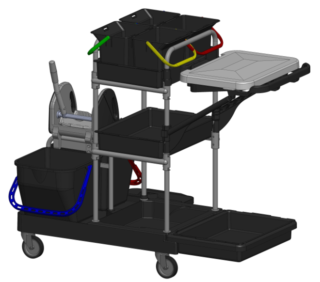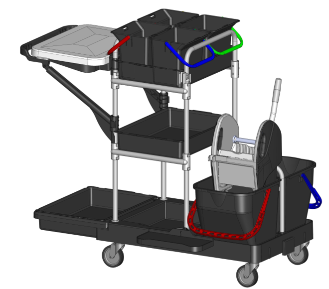 - inkl. 2 Stück 15 Liter Eimern mit rotem und blauem Tragebügel