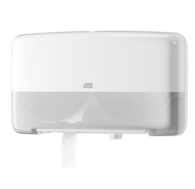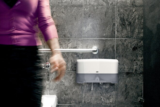 Der Tork Doppelrollenspender für Mini Jumbo Toilettenpapier im Elevation-Design ist die beste Wahl für Waschräume mit hoher Besucherfrequenz, in denen die Zufriedenheit der Gäste ebenso wichtig ist wie hohe Effizienz und geringe Betriebskosten. Da der Spender zwei Rollen mit hoher Kapazität fassen kann, ist stets Papier verfügbar. Tork Elevation Spender zeichnen sich durch ein modernes, funktionales Design aus.