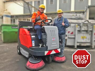 Beim Kehren von Flächen ist eine Staubentwicklung unvermeidbar - diese entsteht vor allem durch den Seitenbesen der Kehrmaschine. Bisher. Dank des neuartigen Hako Dust Stop, lässt sich die Staubentwicklung beim Kehren um bis zu 90 Prozent reduzieren! Der Hako Dust Stop wird über Tellerbesen gestülpt und ummantelt diesen wie eine Haut. Ausgezeichnet wurde der