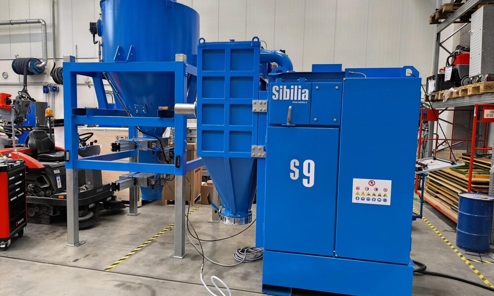 Herzstück der Anlage ist ein Industriesauger Sibilia S9 mit 30 kW Drehkolbengebläse in Kombination mit einem, geliefert und vollständig installiert durch unsere Experten von Stangl. Ergänzt wird das System durch ein Vorabscheidersilo SCH.2050 mit 0,35 m³ Füllvolumen sowie ein robustes Doppelschieber-System, Die Rohrleitungen wurden in verstärkter Ausführung in DN108 und DN76 und alle Bögen mittels Schläuchen installiert.