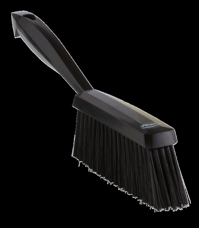 Entfernen Sie mit dem Handfeger Mehl und andere feine Partikel von Förderbändern, Oberflächen für die Lebensmittelverarbeitung, Tischen und Hilfsutensilien. Er kann zusammen mit der Kehrschaufel eingesetzt werden.